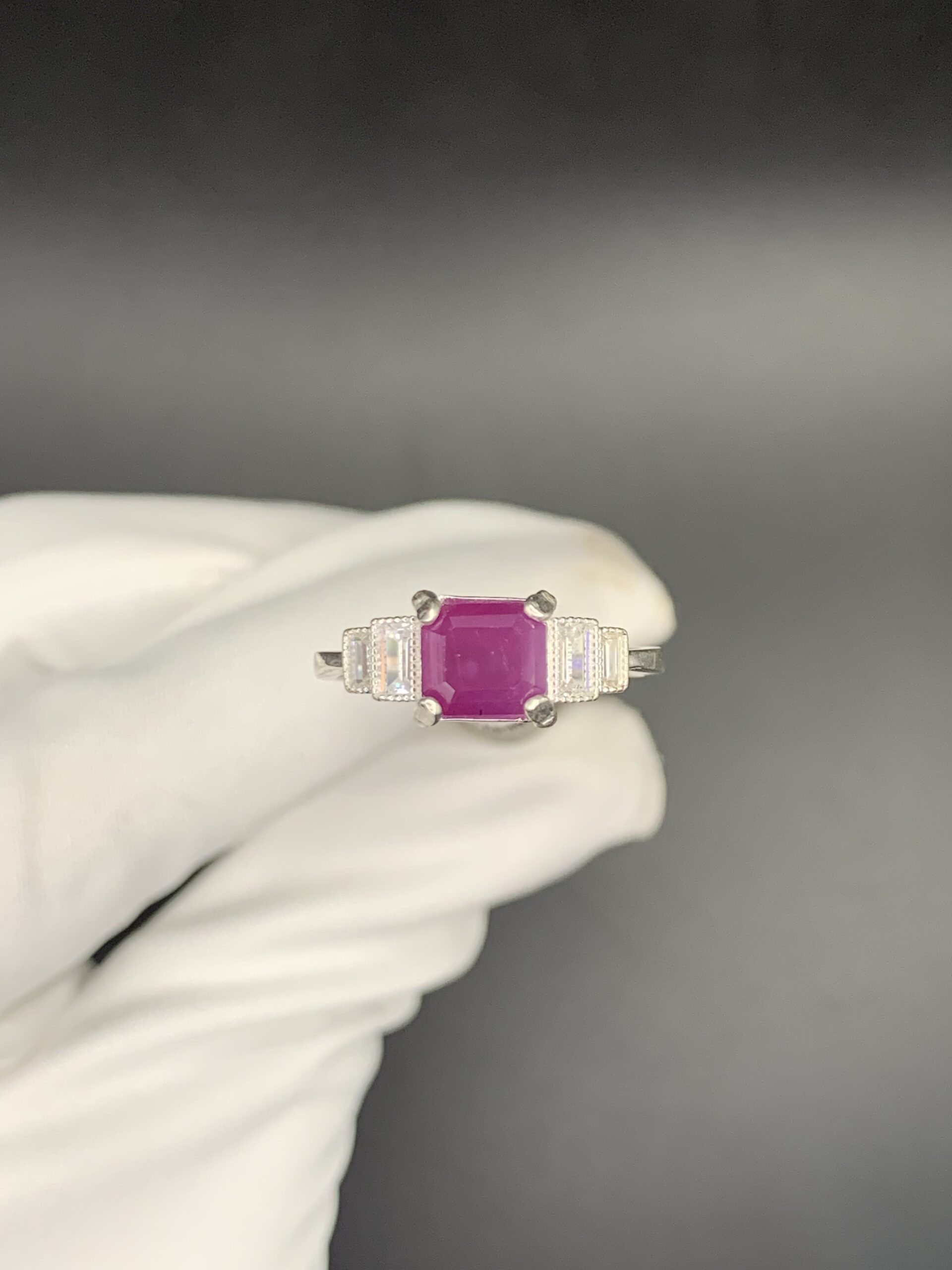Celebrate the grand opening of Fidaa with this refined Italian silver ring, centering on a striking rectangular-cut Ruby—a gemstone celebrated for its deep passion and energy. The vibrant center stone is flanked by a sophisticated, stepped arrangement of sparkling baguette and round Zircons, creating a timeless Art Deco-inspired silhouette. Originally valued at $180, this elegant piece is yours for just $90 during our exclusive 50% off launch sale. Adorn your hand with this symbol of love and classic beauty at an unbeatable price.
