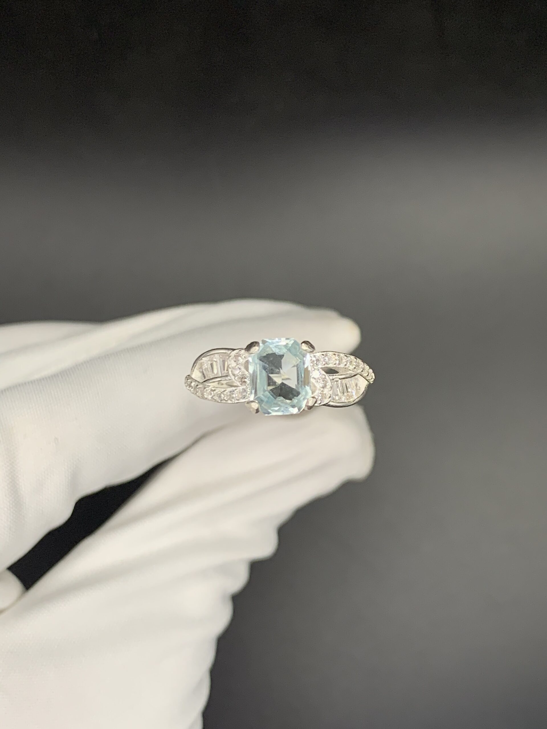 Celebrate the grand opening of Fidaa with this graceful Italian silver ring, centering on a tranquil Aquamarine—a gemstone that evokes the serenity of crystal-clear waters. The stone is held in an intricate, twisting split-shank setting adorned with a mix of sparkling round and baguette Zircons, creating a delicate ribbon of light. Originally valued at $150, this elegant piece is yours for just $75 during our exclusive 50% off launch sale. Wrap your finger in this soothing luxury at a remarkable price.